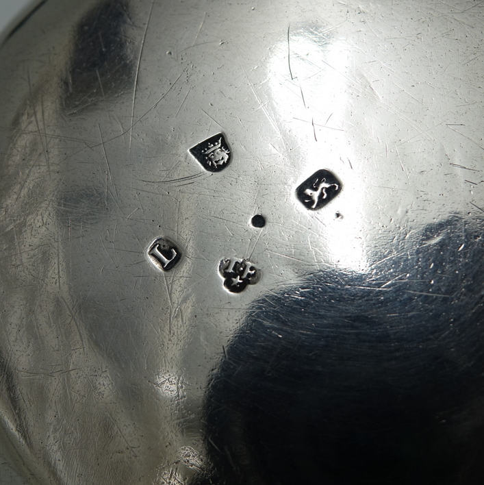 DSC01628 Published May 11, 2016. Size: 707 × 708 in Early 18th Century Antique Sterling Silver Large Brandy Pan London 1726 Thomas Farren < Previous >