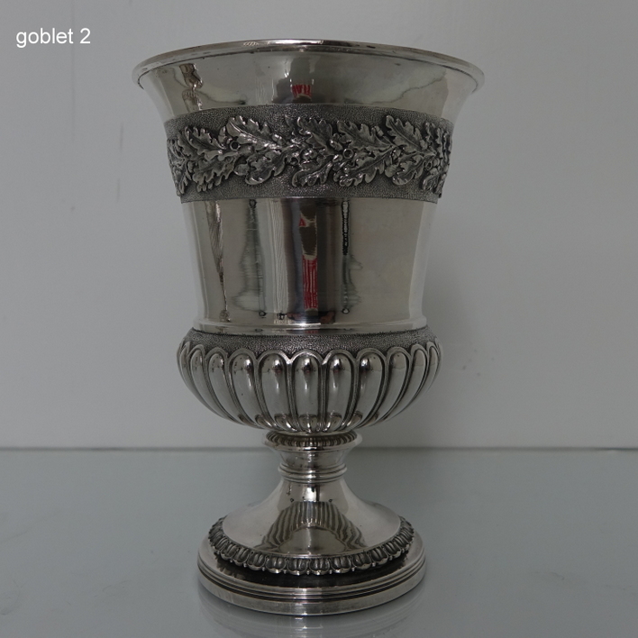 DSC02279 Published June 16, 2016. Size: 708 × 708 in Pair of George III Sterling Silver Wine Goblets London 1814 William Eaton/Emes & Barnard < Previous Next >