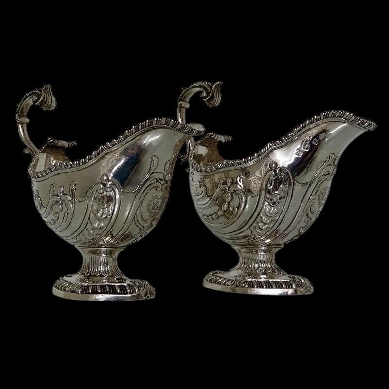 6DD73BDB-3EF9-4D79-A04B-05F0BD71B3EB Published February 23, 2026. Size: 800 × 800 in 18th Century Antique George III Silver Pair Sauceboats London 1767 Daniel Smith & Robert Sharp < Previous Next >