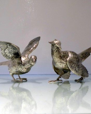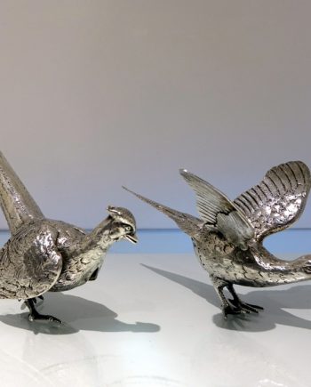 20th Century Modern Sterling Silver Pair Pheasants London 1972 D J Silver Repairs