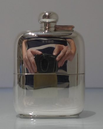 Early 20th Century Modern Sterling Silver & Glass Hip Flask Sheffield 1937 James Dixon & Sons