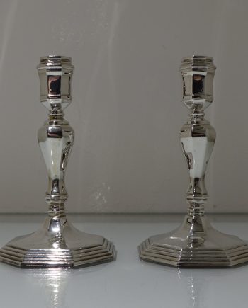 Modern Pair Sterling Silver Candlesticks London 1977 Wakely & Wheeler