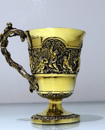 Mid 19th Century Antique Victorian Silver Gilt Sterling Silver Christening Mug London 1866 George William Adams