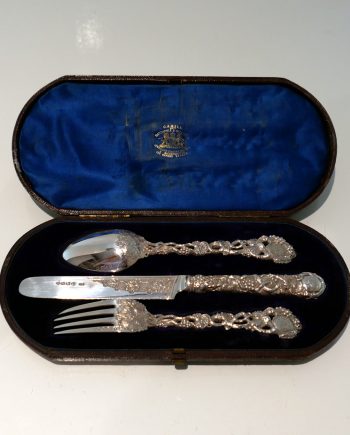 19th Century Antique Victorian Sterling Silver Christening Set London 1876 George Angell