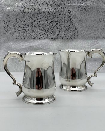 Mid 20th Century Modern Sterling Silver Pair Half Pint Mugs Sheffield 1957/58 Edward Viner