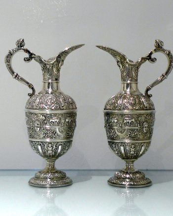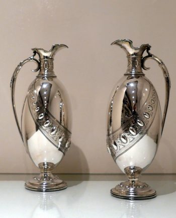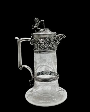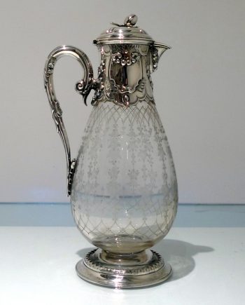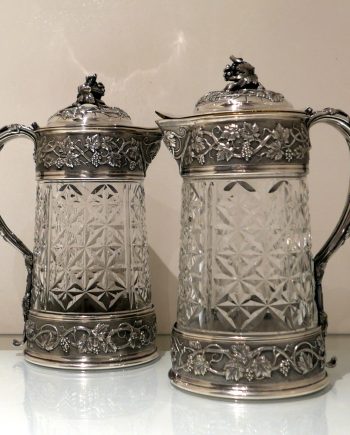 Claret jugs in antique silver, sometimes married with crystal glass, for the elegant serving of fine claret. See also our separate section for Jugs & Pitchers and Milk & Cream Jugs.