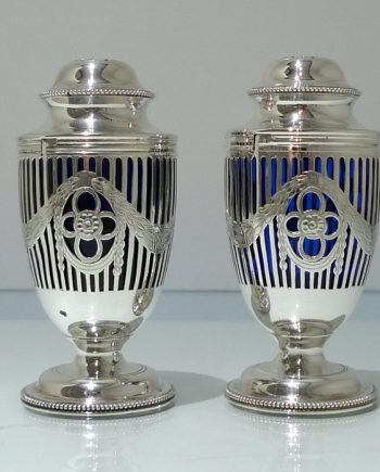 19th Century Antique Victorian Sterling Silver Salt & Pepper Pots London 1882 Rowland Hill