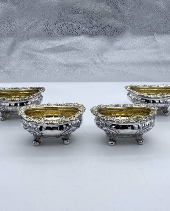 Early 19th Century Antique George III Sterling Silver Set Four Oval Salt Cellars London 1805 Paul Storr