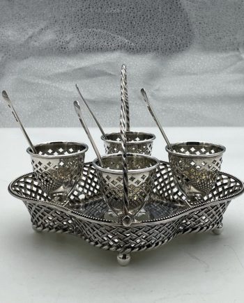 19th Century Antique Victorian Sterling Silver Condiment Set on Stand London 1879 George Fox