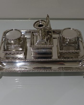 Antique Silver Desk Inkstand London 1827 Robert Hennell