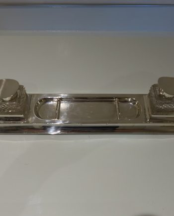 Antique silver inkwells and inkstands, with wonderful engraving and attention to detail.