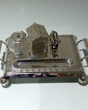 19th Century Antique Victorian Silver-Plated Novelty Inkstand circa 1870 (Unmarked)