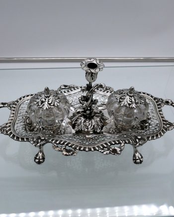 Antique 19th Century Victorian Sterling Silver Inkstand London 1855 Charles and George Fox