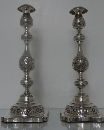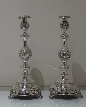 Early 20th Century Pair of Large Sterling Silver George V Sabbath Candle Sticks London 1920 Jacob Zimmerman