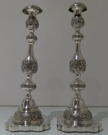 Early 20th Century Antique Edwardian Sterling Silver Pair Sabbath Candlesticks London 1903 Morris Salkind & Reuben Koshr