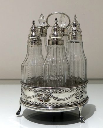 18th Century Antique George III Sterling Silver Five Bottle Cruet London 1783 Thomas Daniell