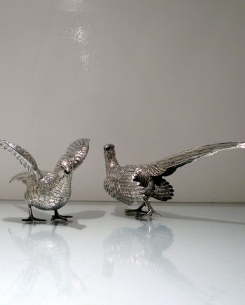 Mid 20th Century Modern Sterling Silver Pair Pheasants Imported Marked London 1959 F & Sons Ltd