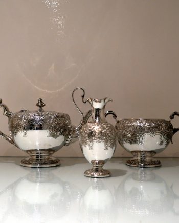 19th Century Antique Victorian Sterling Silver Three Piece Teaset Edinburgh 1870 Mackay, Cunningham & Co