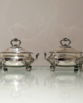 Early 19th Century Antique George III Sterling Silver Pair Sauce Tureens London 1818 William Burwash