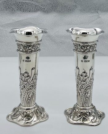 Early 20th Century Edwardian Sterling Silver Pair Candlesticks London 1904 James Aitchison