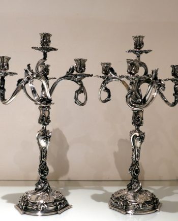 19th Century Pair French Antique Four Light Cast Silverplate Candelabra Circa 1865
