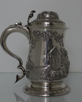 Sterling Silver David Teniers Style Tankard & Cover London 1745 Wlliam Grundy