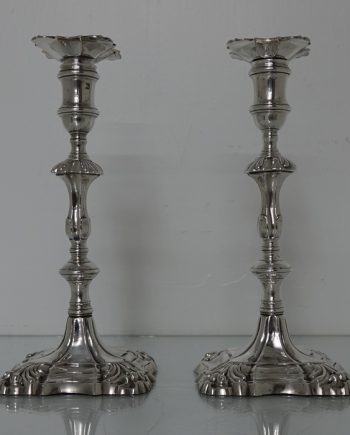 18th Century Antique George II Sterling Silver Pair Candlesticks London 1756 William Shaw II & William Priest