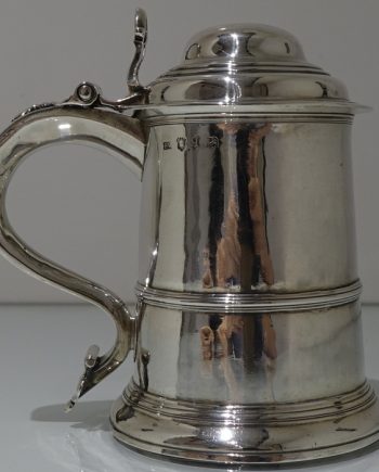 Early 18th Century Antique George II Sterling Silver Tankard & Cover London 1735 Thomas Mason