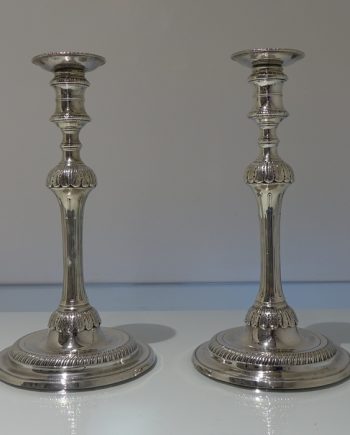 Mid 18th Century Antique George II Sterling Silver Pair of Candlesticks London 1754 John Quantock