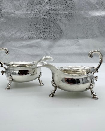Mid 18th Century Antique George II Pair Silver Sauceboats London 1745 Henry Brind