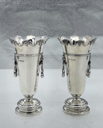 Early 20th Century Antique George V Sterling Silver Pair Vases London 1915 Corke Brothers & Co