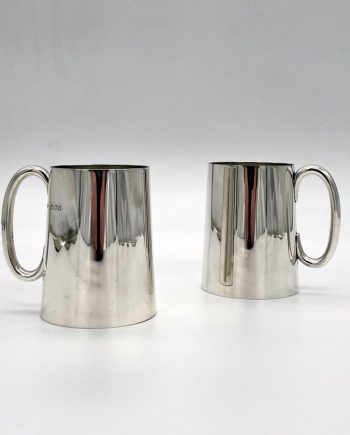 Mid 20th Century Modern Sterling Silver Pair Pint Mugs London 1943 Goldsmiths & Silversmiths Co Ltd