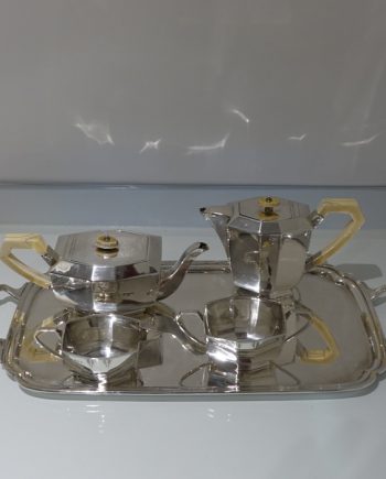 Early 20th Century George V Sterling Silver Four Piece Tea & Coffee Set Sitting on Large Oblong Tray Sheffield 1934/35 Edward Viner
