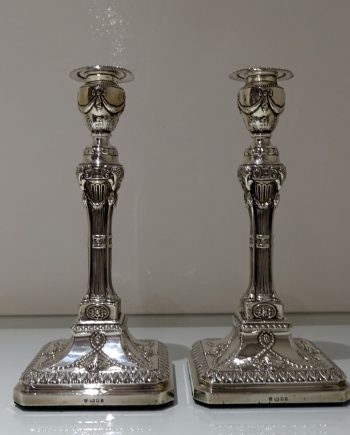 Early 20th Century Antique George V Sterling Silver Pair Candlesticks London 1919 Lawrence Alfred Crichton