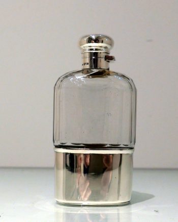Early 20th Century Antique George V Sterling Silver & Glass Hip Flask London 1914/6 maker PWG