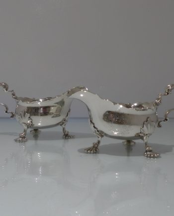 Mid 18th Century Antique George II Sterling Silver Pair Sauceboats London 1747 Fuller White