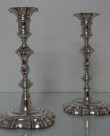 Mid 18th Century Antique George II Sterling Silver Pair of Candlesticks London 1754 John Quantock