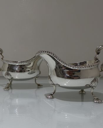 Early 19th Century Antique George III Sterling Silver Pair Sauceboats London 1810 William Stroud