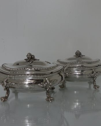 Early 19th Century Antique George IV Silver Pair Sauce Tureens London 1823 William Stroud
