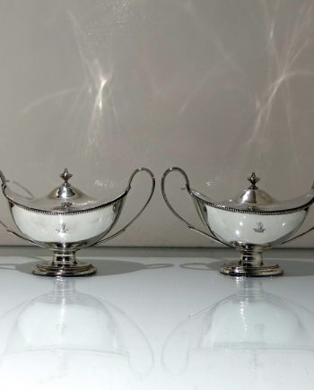 18th Century Antique George III Pair Silver Sauce Tureens London 1786 John Scofield