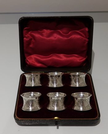 Early 20th Century Antique Edwardian Sterling Silver Set Six Napkin Rings London 1909 George Jackson & David Fullerton
