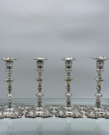 Mid 18th Century Antique George III Sterling Silver Set of Four Candlesticks London 1748 John Cafe