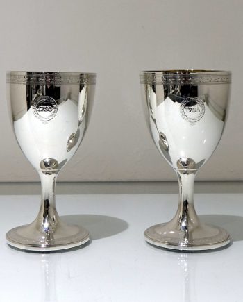 Mid 18th Century Antique George III Sterling Silver Pair Wine Goblets London 1794 John Denziloe