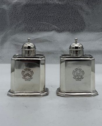 Early 18th Century Antique George I Silver Pair Tea Caddies London 1724 Edward Gibbon
