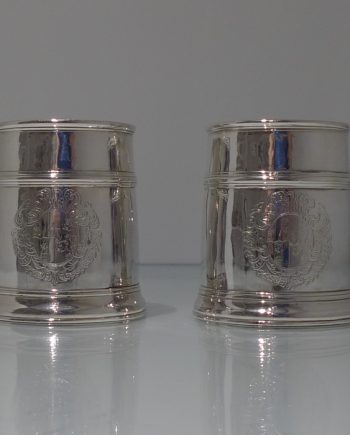 Early 18th century Antique Queen Anne Britannia Silver Pair Mugs London 1704 John Rand