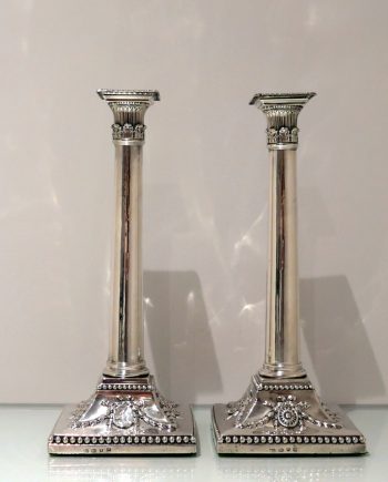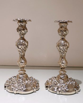 Early 19th Century Antique George IV Sterling Silver Pair Candlesticks Sheffield 1823 Kirby Waterhouse & Co