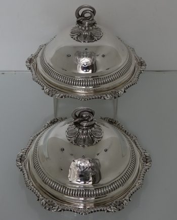 18th Century George III Antique Sterling Silver Entree Dishes & Covers London 1820 Richard Sibley