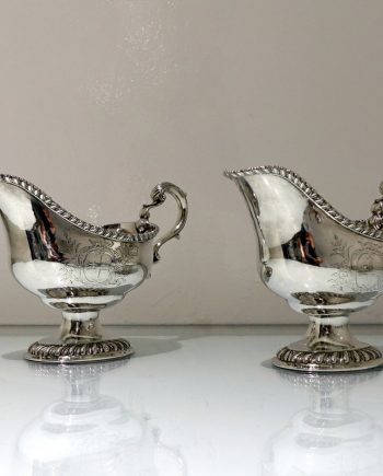 Mid 18th Century Antique George III Sterling Silver Pair Sauceboats London 1764 John Henry Vere & William Lutwyche