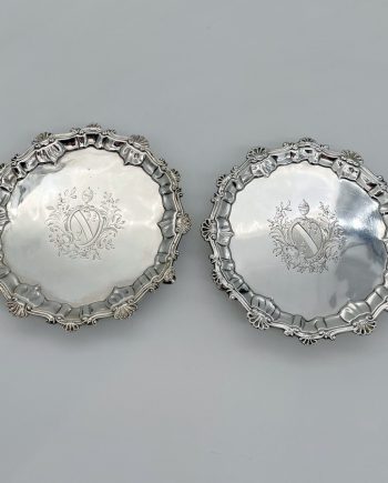 Mid 18th Century Antique George II Pair Silver Salvers London 1756 Ebenezer Coker