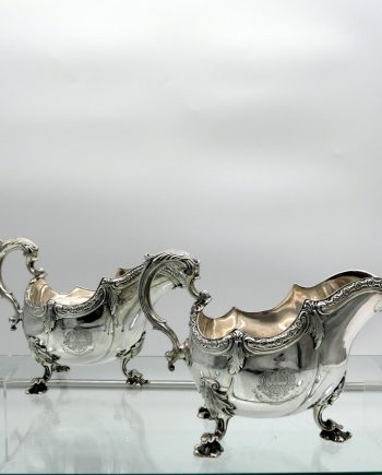 Mid 19th Century Antique Victorian Sterling Silver Pair Sauceboats London 1847 Robert Garrard